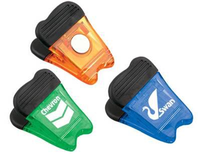 Promotional Plastic Bag Clip With its large imprint area, customers will easily view your color logo on this promotional bag clip. They will be able to use it in their kitchens for all types of things, such as keeping snack bags closed and sorting coup