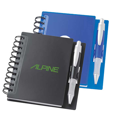 Recycled hard cover wire-bound notebook with die cut star cover design. Includes 80 lined sheets of 100% post consumer recycled paper with an elastic pen loop and matching recycled black ink pen (with yellow plastic clip an